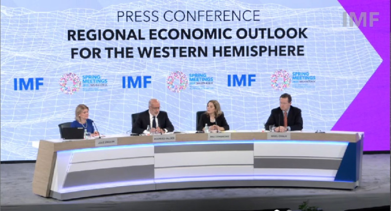 Rodrigo Valdés explicó que la región de América Latina y el Caribe tendrá un crecimiento promedio moderado de 2%, respecto al 2.4% del anterior reporte y del 2.5%esperado hace seis meses. Los directivos del FMI se refirieron al impacto negativo de las medidas arancelarias de EE.UU, principalmente para México y Brasil. Ven factores complejos y de alta volatilidad que puede afectar la demanda. Además, una caída del flujo de migrantes y de las remesas.