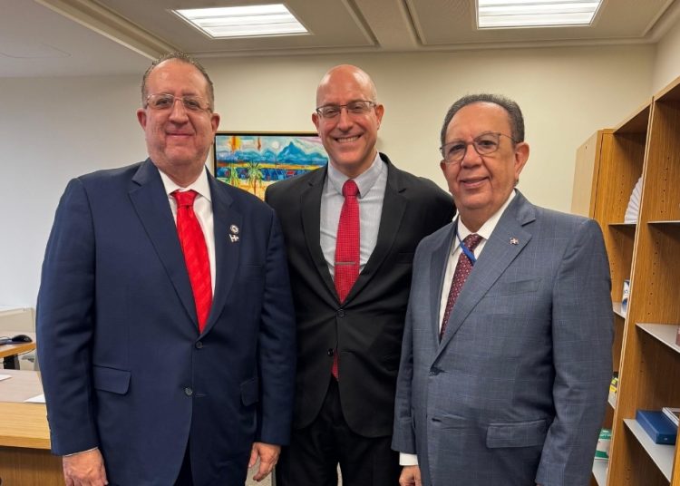 El gobernador del Banco Central de la República Dominicana, Héctor Valdez Albizu, y el ministro de Hacienda y Economía (MHE), Magín Díaz, sostuvieron un encuentro bilateral con André Roncaglia, director ejecutivo del Fondo Monetario Internacional (FMI) por Brasil y presidente de la constituyente de países, a la cual pertenece la República Dominicana, en el marco del inicio de las Reuniones Anuales del FMI y del Banco Mundial de 2025.